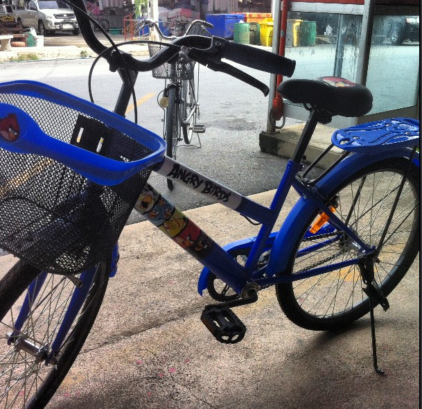 We also made friends with some local Thai lads, an old lady who sells meat on the street (my Thai mother) and purchased some push bikes. The bike choice at the local market was limited, so I ended up with an Angry Birds Limited Edition child’s bike. I looked ridiculous riding it.